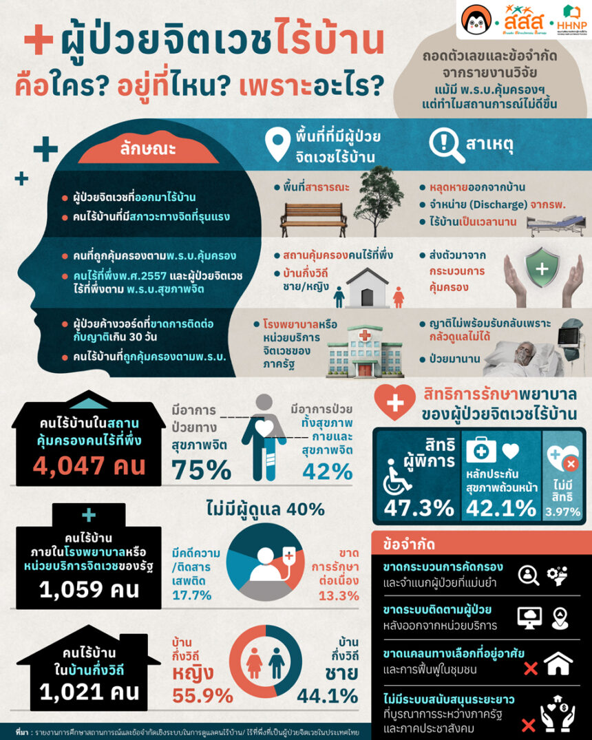 ผู้ป่วยจิตเวชไร้บ้านคือใคร-อยู่ที่ไหน-เพราะอะไร? ถอดตัวเลขและข้อจำกัดจากรายงานวิจัย แม้มี พ.ร.บ.คุ้มครองฯ แต่ทำไมสถานการณ์ไม่ดีขึ้น